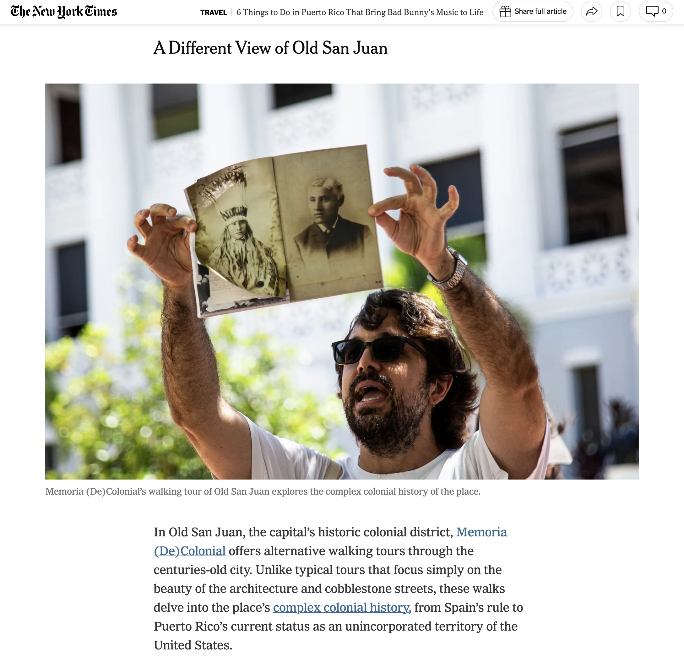 Nos alegra compartir que nuestro recorrido San Juan Anticolonial fue incluido en un artículo del New York Times sobre qué hacer en Puerto Rico durante la residencia de Bad Bunny.