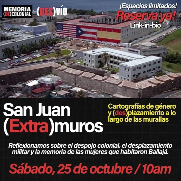 (Re)pensando el (patri)monio para (des)colonizar nuestra memoria colectiva a través de miradas críticas y (anti)rracistas. DESARROLLANDO UNA CARTOGRAFÍA (DE)COLONIAL DE PUERTO RICO. (DES)VIÁNDONOS DE NARRATIVAS OFICIALES. (RE)PENSANDO NUESTROS ESPACIOS DE MEMORIA COLECTIVA. CONOCE MÁS CONOCE LA EQUIPA Slide 1 Slide 1 (current slide) Slide 2 Slide 2 (current slide) Slide 3 Slide 3 (current slide) Slide 4 Slide 4 (current slide) Slide 5 Slide 5 (current slide) Slide 6 Slide 6 (current slide) ¡Síguenos y mantente al día!Mantente al día con nuestra misión. Recibe actualizaciones sobre nuevos recorridos, eventos especiales y noticias de Memoria Decolonial. Súscribete al newsletter ¡Apoya nuestra misión!Con $5, $20 o $100, podemos expandir nuestros proyectos educativos, lanzar nuevos talleres y diversificar nuestras audiencias. Haz una donación Merch