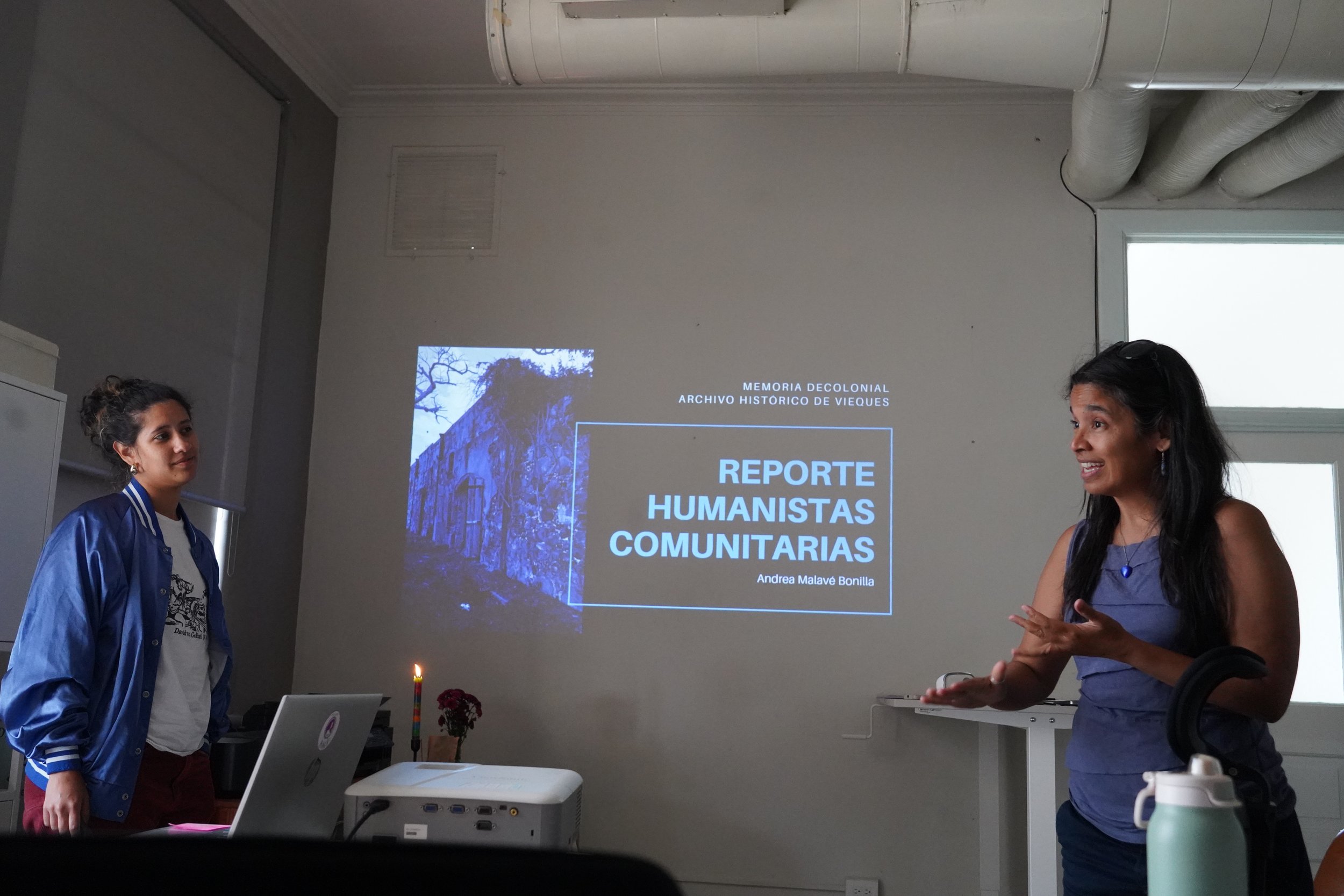 En el 2024, Memoria Decolonial, gracias a una subvención de Mellon Foundation, brindó al Archivo Histórico de Vieques apoyo económico y acompañamiento para desarrollar un proyecto de investigación que culminaría en un recorrido histórico decolonial. En el proceso, un grupo de seis humanistas comunitarias viequenses participó en talleres y desarrollaron investigación bajo la guía del Dr. Rafael Capó García y la Dra. Marie Cruz Soto.